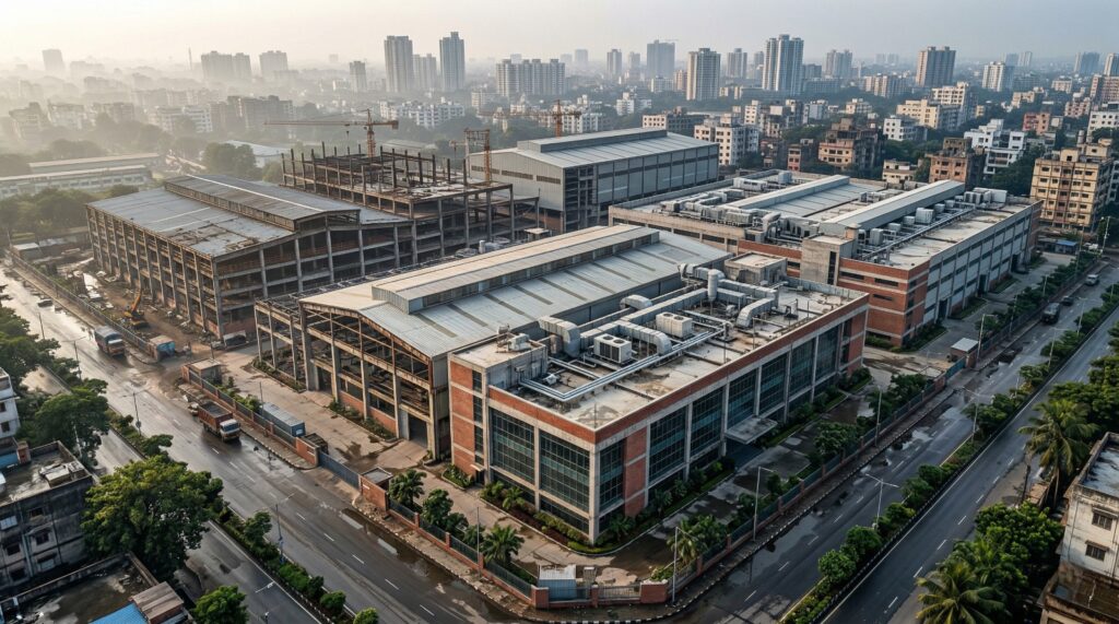 Explore commercial real estate projects in Eastern India across factories, office buildings, warehouses, and retail developments designed for scale and operational efficiency.